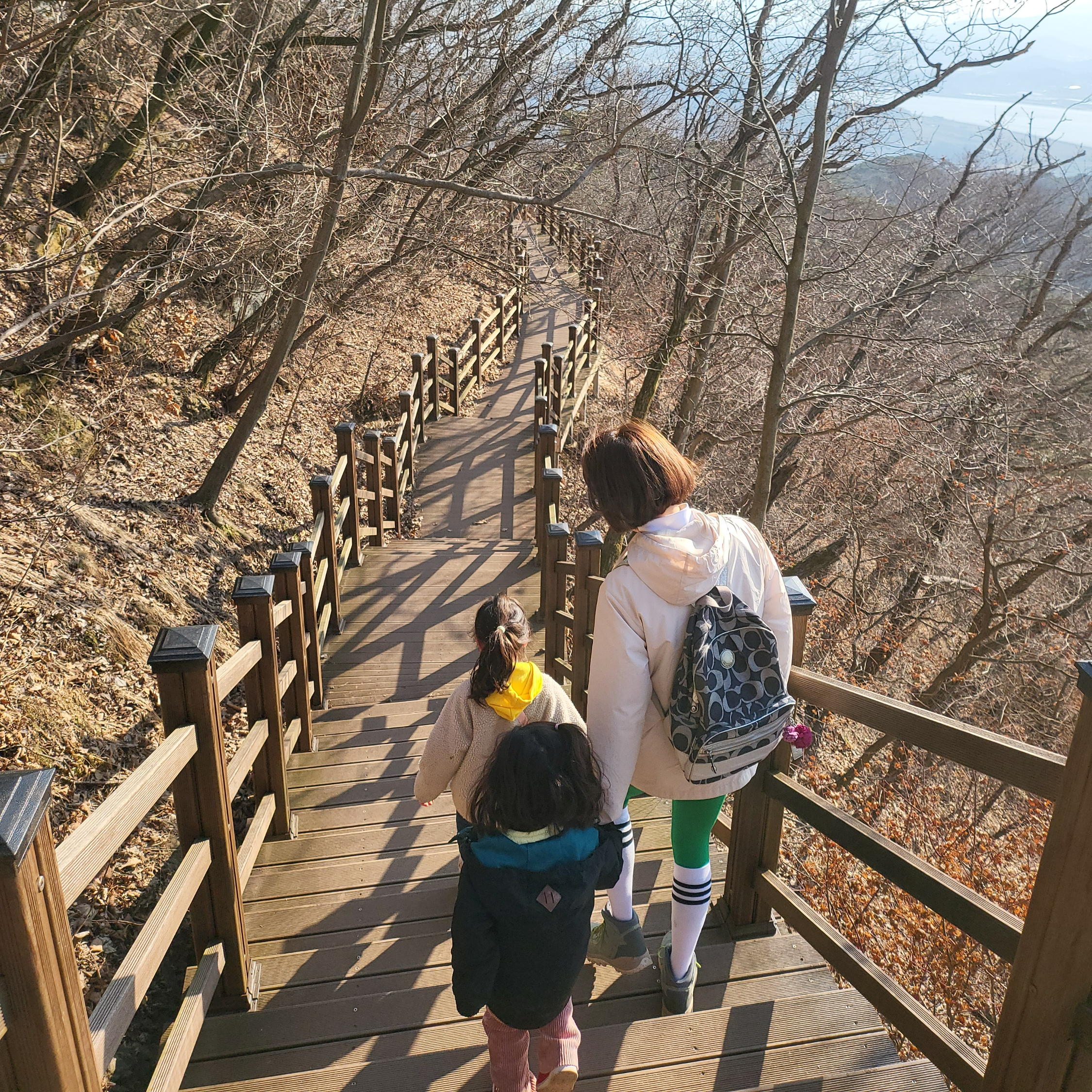 아이들이 잘 걷고 즐거워하지만, 계단 구간과 너무 긴 산행은 아직 무리일 수 있다는 것!