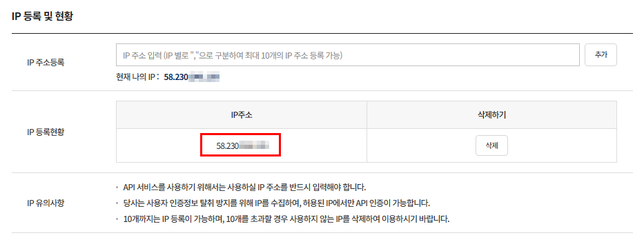 IP 등록 완료.