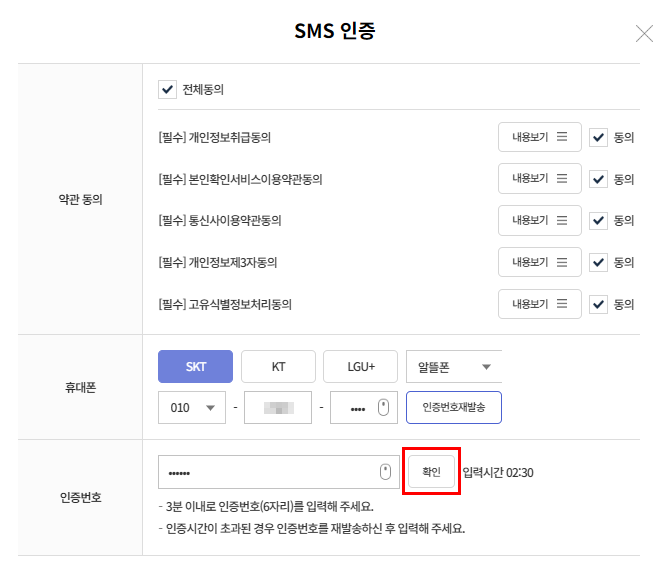 SMS 인증하여 계좌추가